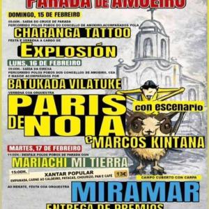 Domingo 15, Domingo de Entroido. A las 19.00 horas actuará la orquesta Miramar y a las 22.00 horas la disco móvil La Duendenta.